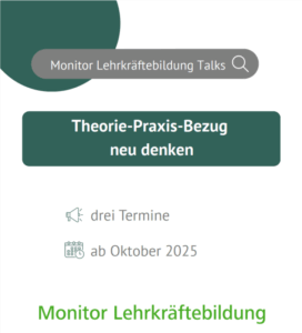 Zwischen Oktober und Dezember 2025 veranstaltet das CHE die Webinarreihe Monitor Lehrkräftebildung Talks: Theorie-Praxis-Bezug neu denken.